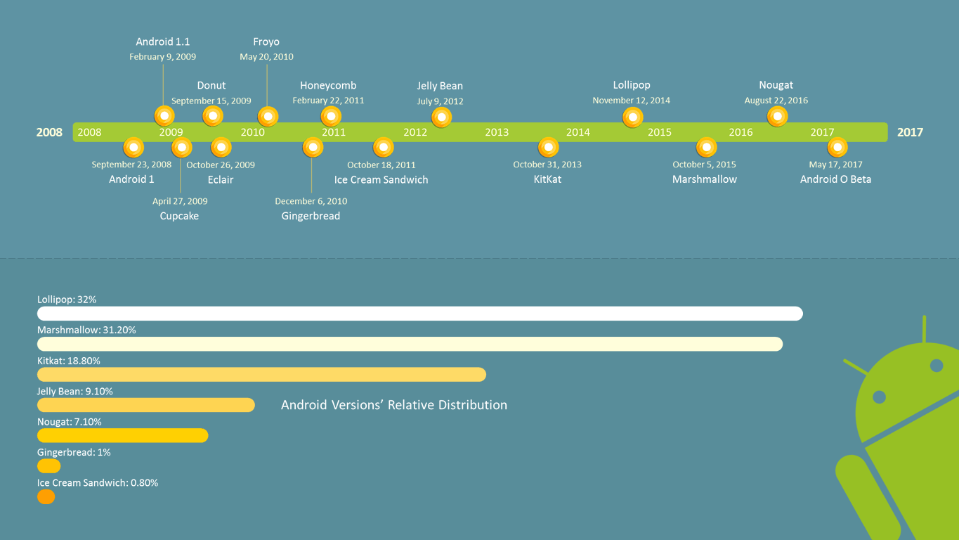 An easily editable Android Timeline PowerPoint slide is available here.