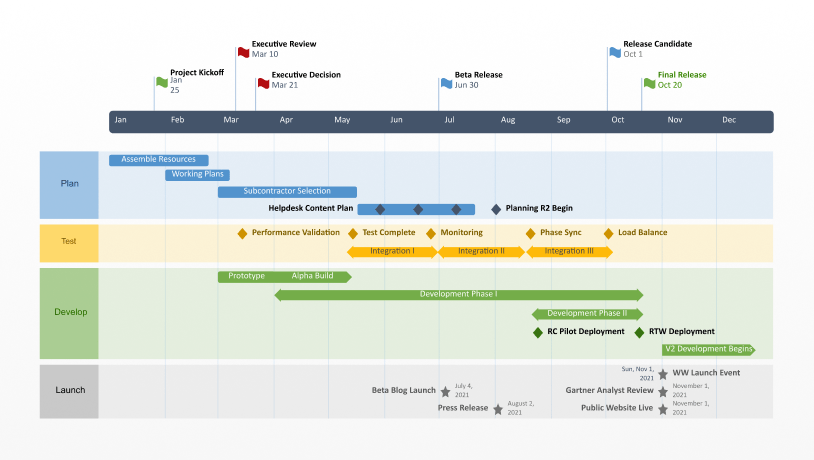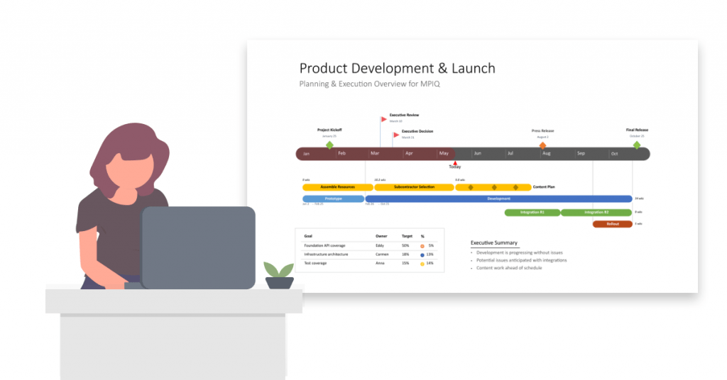 That’s when I realized that I needed a timeline maker that would seamlessly plug into PowerPoint, the most popular medium for business presentations, and allow me to easily design, update, share and keep track of all my Gantt charts and timelines.
