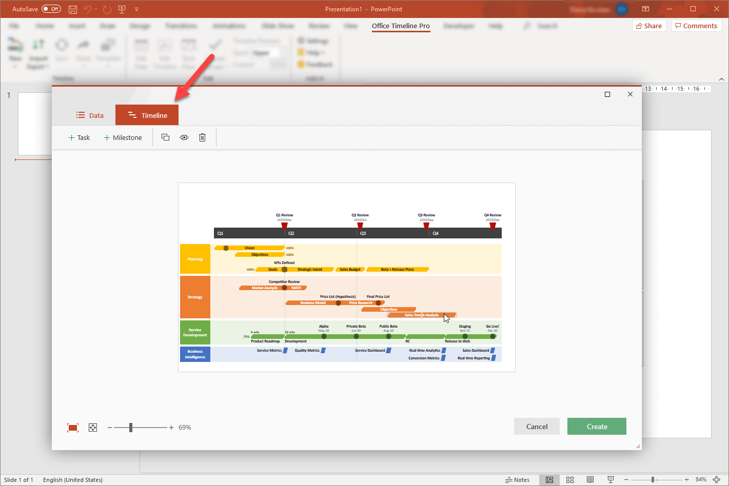 Using timeline templates in PowerPoint