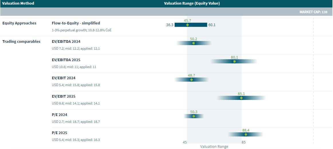 Valutico’s analysis post-incident offers a contrasting picture of Boeing’s valuation. The DCF valuation stands at USD 45 billion, while Trading Comparables suggest a range of USD 50-90 billion, indicating a potential market overvaluation. This variance highlights Boeing’s market share as a significant factor in its market valuation.