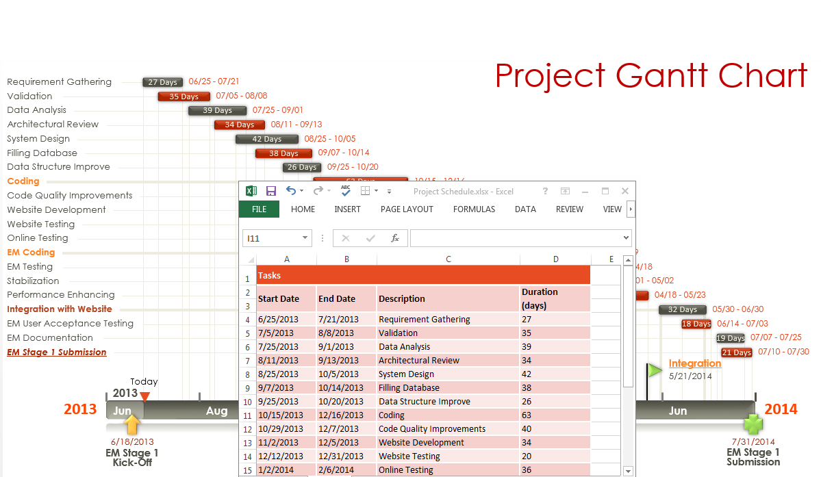 Project plans, reviews, and proposals often need to be presented to team, clients and executives. Gantt charts and timelines are the proper way to communicate to these audiences. Clients and executives, in particular, expect these Gantt charts and timelines to be graphical, visually appealing and easy to understand. However, creating a Gantt chart in Excel has been challenging and time consuming.