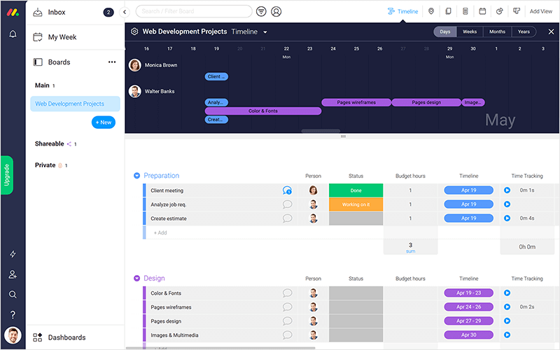 At its core, Monday is not exactly a Gantt chart maker, but it can become one by adding the Timeline widget to the dashboard. Monday also shines in terms of assigning specific tasks to team members, Then, via the Timeline view mode, you can access a comprehensive overview of all projects.